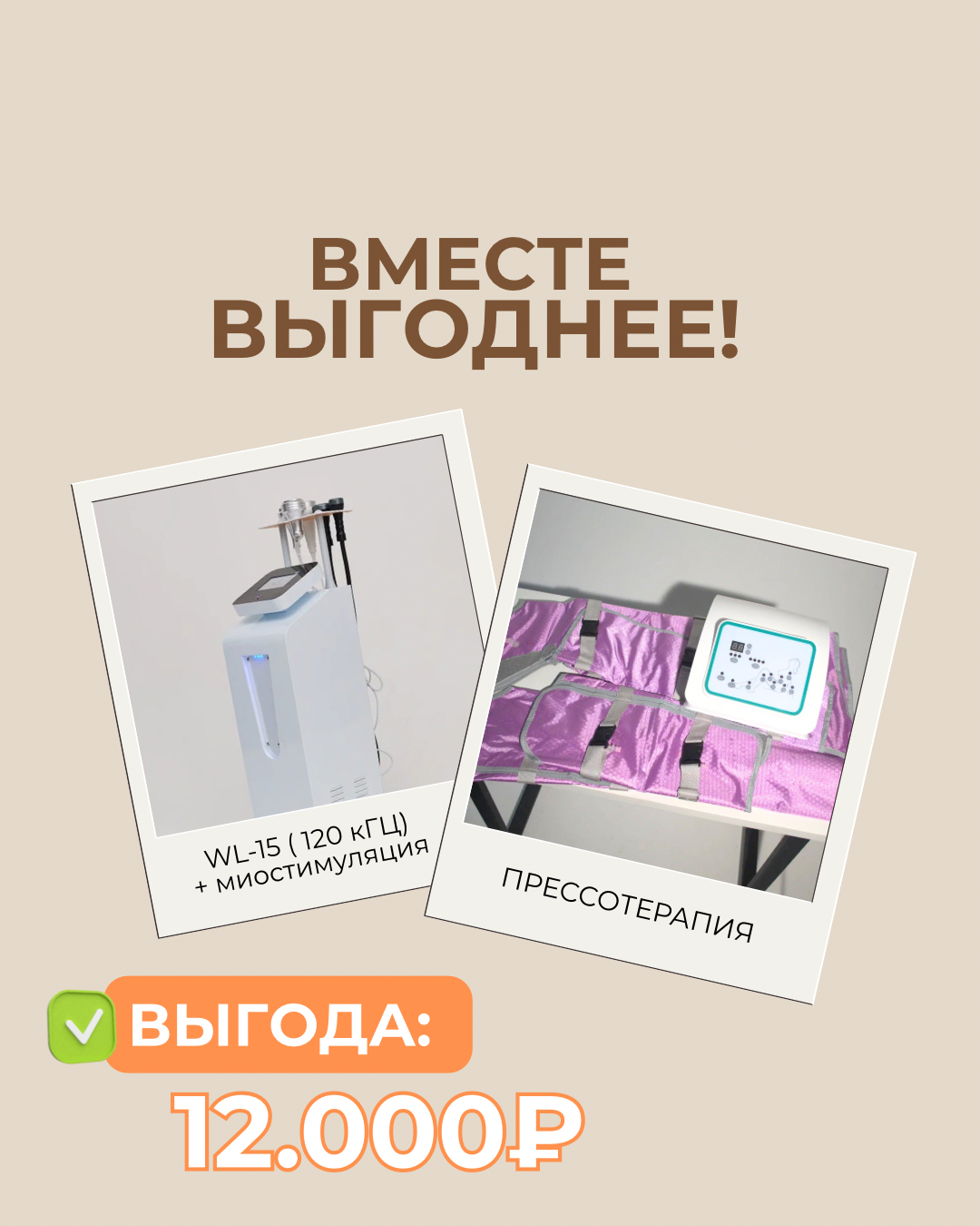 ВМЕСТЕ ВЫГОДНЕЕ! WL-15 (120 кГЦ) и миостимуляция и Прессотерапия